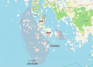 Der Lemland-Granit liegt im Süden der Ålandinseln, westlich der Insel Lemland. Dort steht das Gestein überwiegend unter Wasser an, ist aber auf kleinen Inseln zugänglich. Das Granitmassiv misst etwa 13 x 9 km, einschließlich eingeschlossener Nebengesteine. Die Schraffur in der Karte deutet die Größe und Lage des Plutons an.
