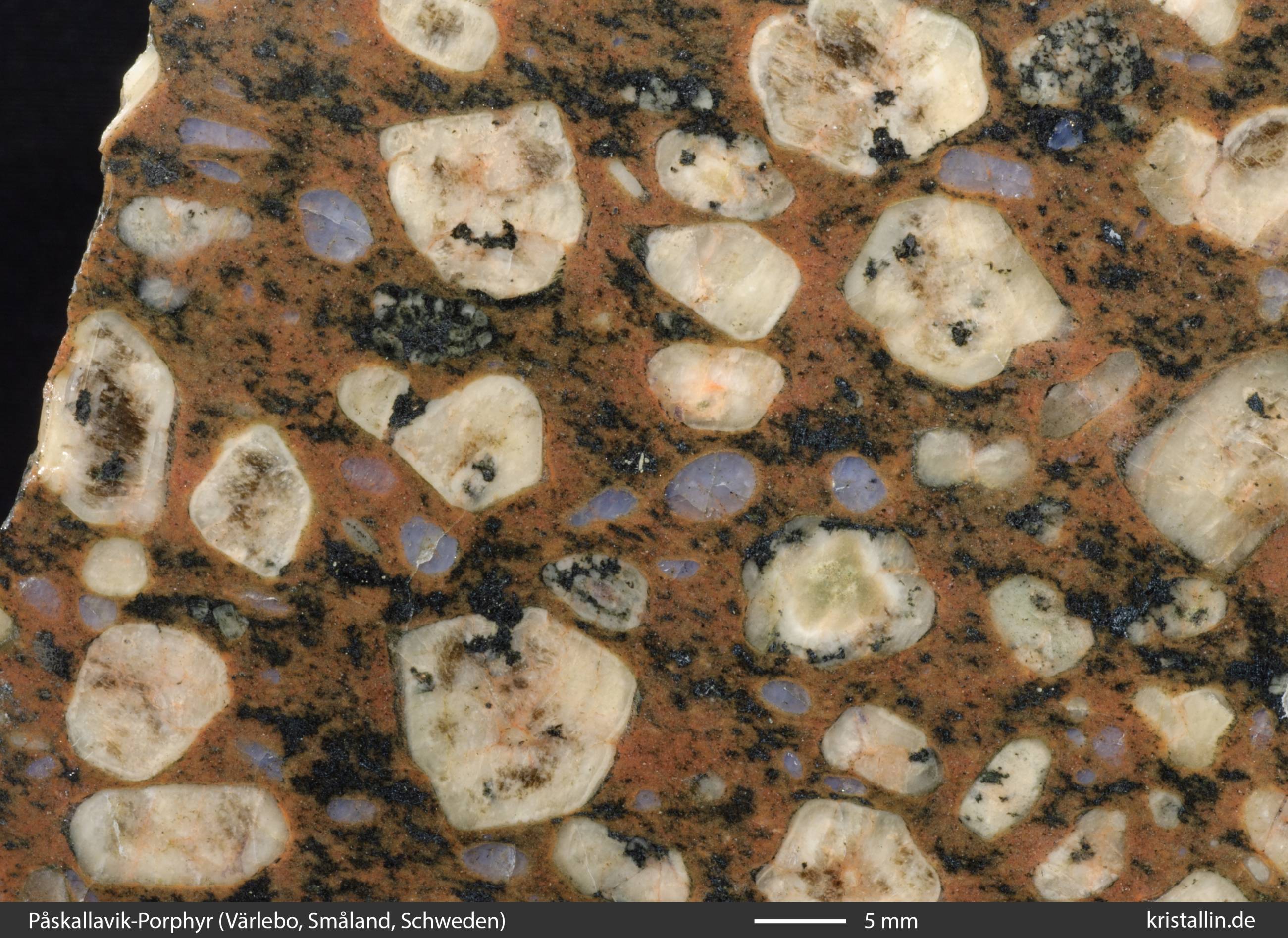Zu beachten ist, dass die Påskallavik-Porphyre in der Geschiebekunde allein über ihr Aussehen definiert werden. Andere Gänge, die in Småland direkt benachbart anstehen und auch genetisch zu dieser Gruppe gehören, enthalten keine runden Feldspäte und werden deshalb in der Geschiebekunde nicht beachtet. Das folgende Stück ist ein Beispiel dafür: