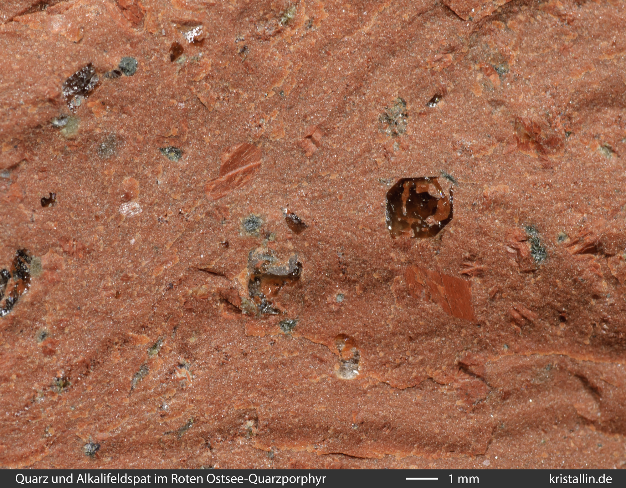 Rote Vulkanite mit durchgehend rundlichen Quarzen sind keine Roten Ostsee-Quarzporphyre, auch wenn die Quarze Korrosionsspuren zeigen. Ebenso sind rundliche Alkalifeldspäte ein Hinweis auf ein anderes Herkunftsgebiet.