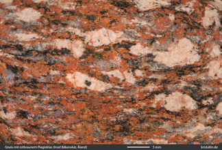 Der gerundete Stein wurde von Xander de Jong von der Insel Båkenskär (Åland) mitgebracht, wo dieser Gneis ansteht. [...]
